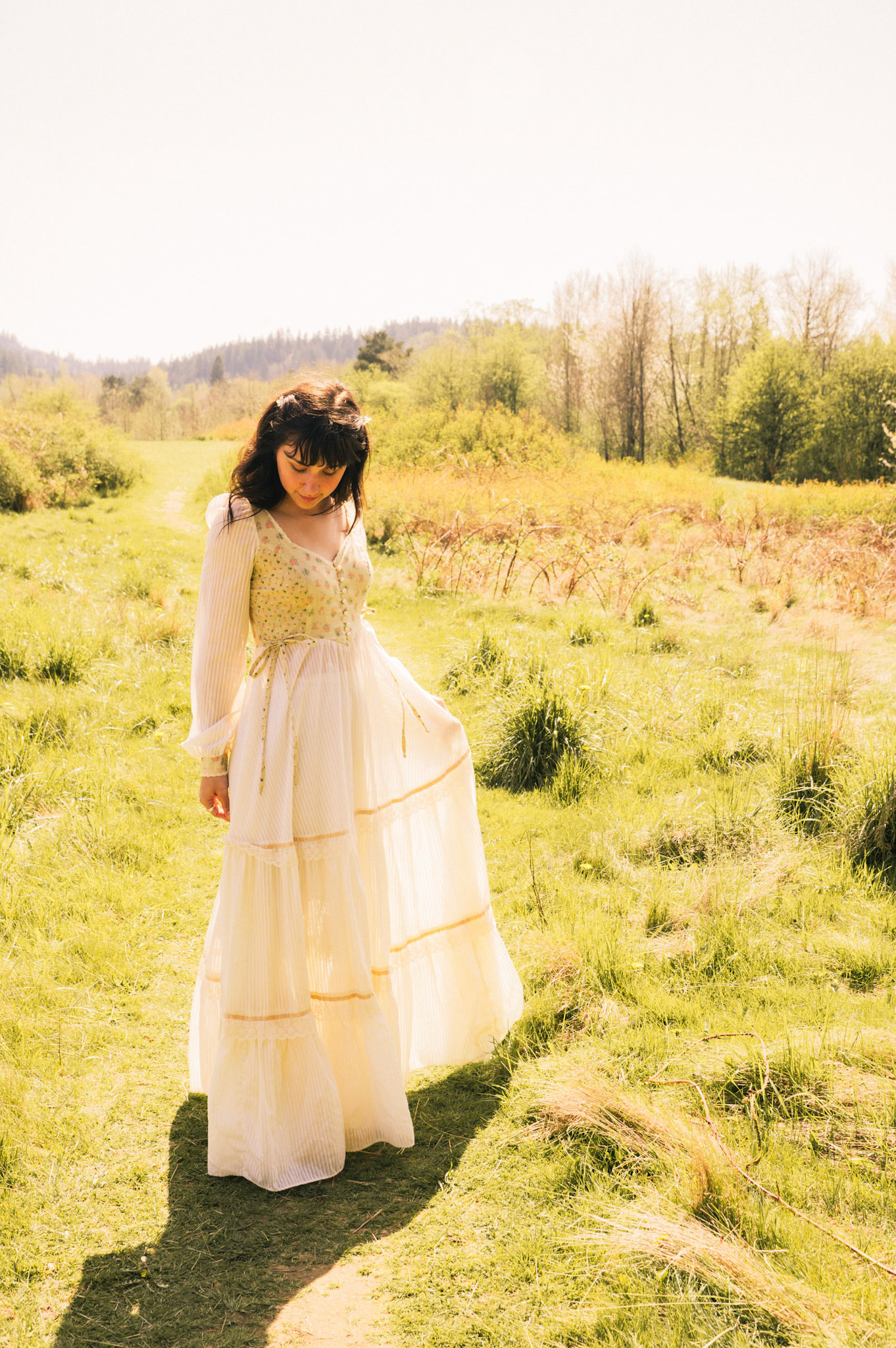 This series for Worn Again Thrift highlights the ethereal beauty of vintage Gunne Sax dresses, capturing the nostalgic and timeless essence of these iconic designs. Set against a dreamy, natural backdrop, the flowing fabrics and delicate details of each dress are brought to life through a whimsical, free-spirited aesthetic. The light-filled scenes evoke a sense of romanticism and nostalgia, blending fashion and nature to showcase the elegance of these vintage treasures.